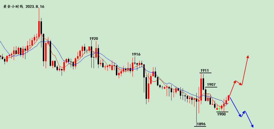2、假设今天黄金跌破了今日早间起涨点1900,那么我也可能会去做反抽的空单,继续看短线下跌。