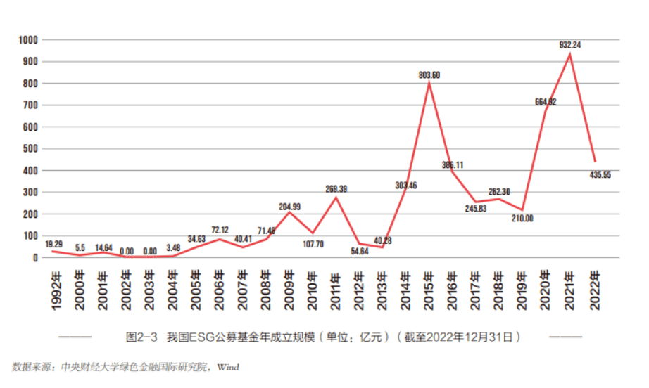 报告显示,截至2022年12月31日,中国ESG公募基金共有624只,总规模合计约5182亿元。相较于全市场公募基金约26万亿元的总规模,ESG公募基金比例仅占约2%,总体市场规模仍然较小。
