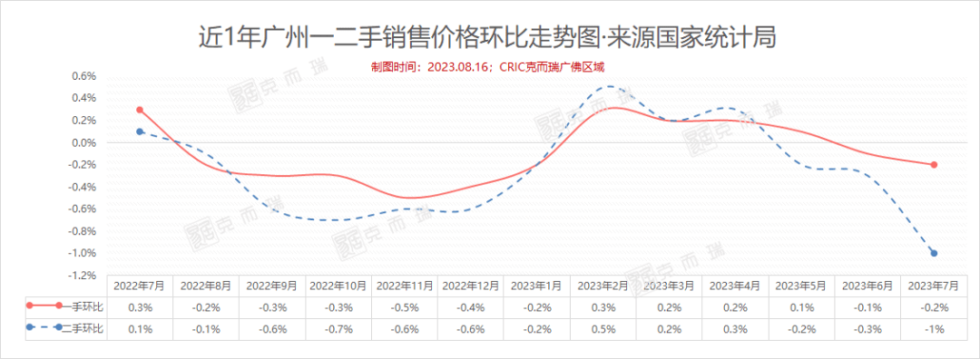 从二手住宅看,7月份,一线城市二手住宅销售价格环比下降0.8%,降幅比上月扩大0.1个百分点;其中,广州下降1个百分点,是一线城市中降幅最大的城市。