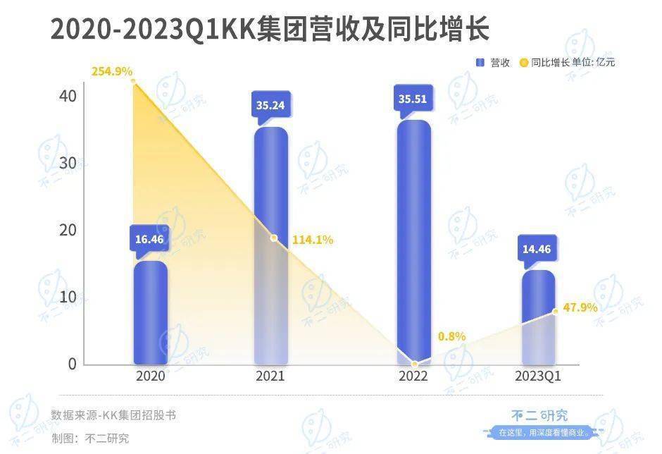 「不二研究」注意到,KK的营收增速已明显放缓,2020-2021年同比增长分别为254.9%、114.1%,而2022年增速几乎陷入停滞,同比增长仅为0.8%。