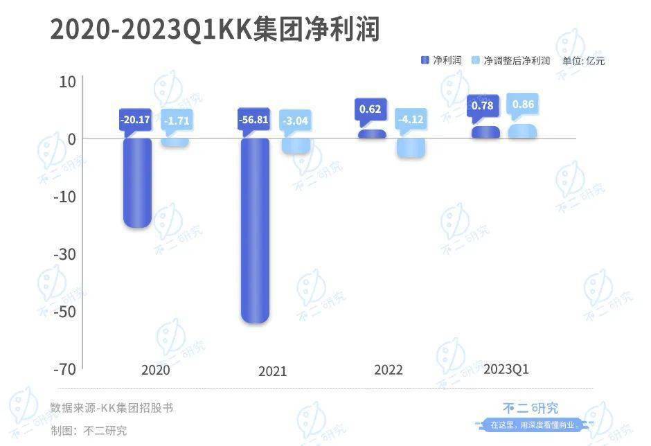 「不二研究」发现,KK集团三年多累计巨亏达75.58亿元;尽管其今年一季度实现扭亏为盈,但在盈利能力未经证实的前提下,上市并不能解决KK经营的根本问题。