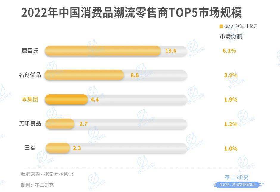 根据弗若斯特沙利文报告,以GMV计,KK跻身2020年中国潮流零售商Top3,市占率为1.9%;2019-2022年KKGMV复合年增长率为88.6%。