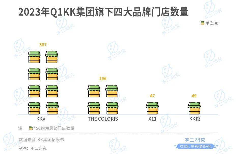实际上,色彩鲜艳的门店不仅是KK的亮眼招牌,也是KK集团是营收根基。开店似乎已经成为KK上市故事的逻辑起点:通过门店的扩张实现降本增效。