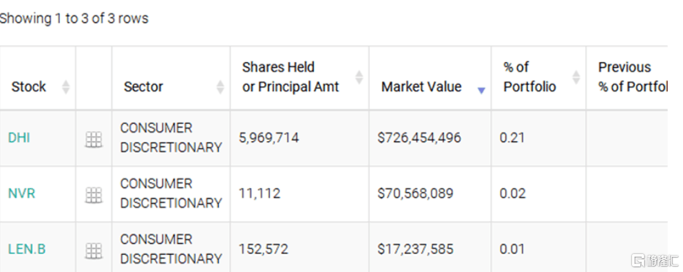 新进买入的三只股票,均为美国大型房地产公司,分别是DR Horton霍顿公司、Lennar(莱纳)、NVR。