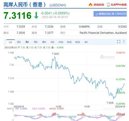 8月15日早间,受超预期“降息”影响,离岸人民币兑美元跌破7.31关口,随后又迅速拉升,一度收复7.29关口。再后,离岸人民币在7.3附近持续波动,盘中一度下探至7.33,日内跌幅超500点。截至8月16日16:20,离岸人民币兑美元报7.3116,日内波幅超过300点。