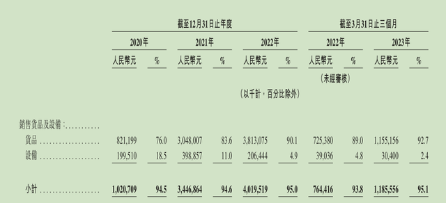 其中,向加盟店下销售货品及设备是茶百道最核心的收入来源,2020年至2023年一季度,茶百道来自销售货品及设备的收入占总收入比例均在93%至95%之间。