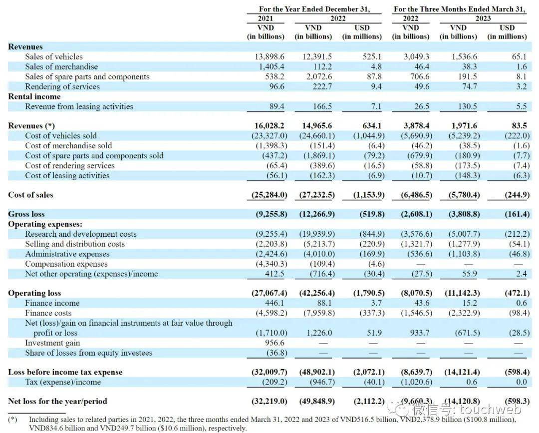 VinFast在2023年第一季度营收为8354万美元,运营亏损为4.72亿美元,净亏损为6亿美元。