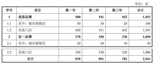 其中,直营门店计划未来三年内新增136家,加盟门店计划新增2543家。