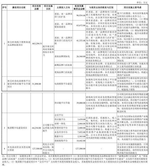 关于本次募投项目与公司现有业务的区别与联系,豫园股份表示,本次募投项目系公司战略布局的进一步实施,主要包含“珠宝时尚线下销售渠道及品牌拓展项目”“珠宝时尚电商销售平台建设和供应链平台升级项目”“集团数字化建设项目”等主业。