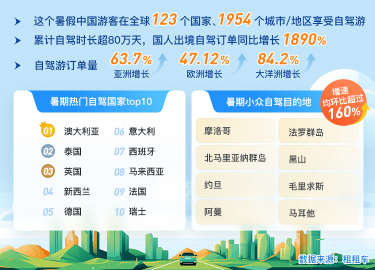 租租车发布全球暑期自驾游报告:出境自驾订单增长近19倍