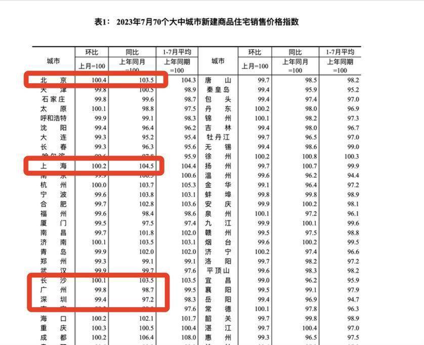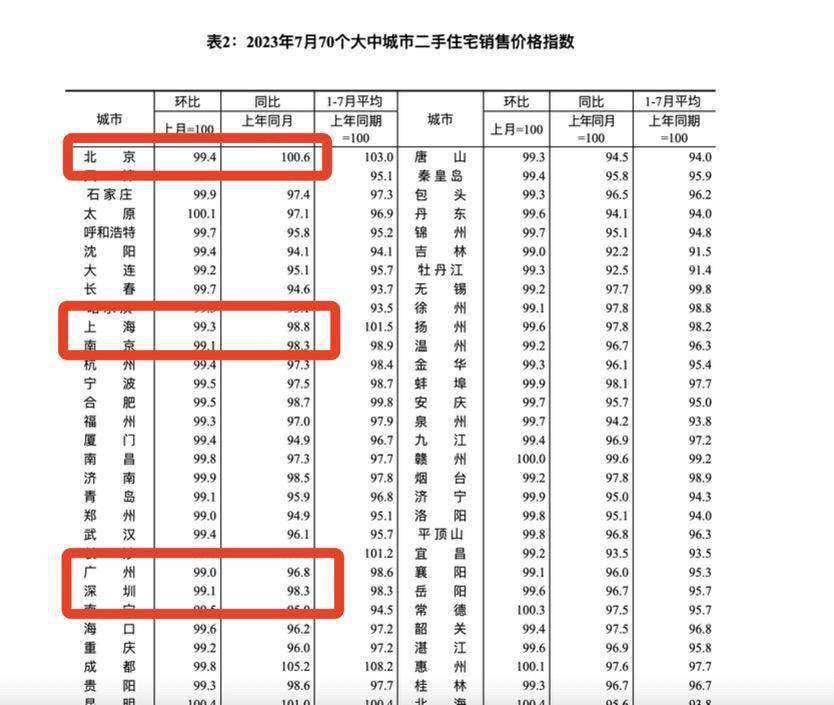 【大河财立方 记者 赖苏婷 北京报道】8月16日,国家统计局发布最新的70城房价指数。数据显示,7月份,一线城市新建商品住宅销售价格环比持平,二手住宅销售价格环比下跌0.8%。其中,北京新建商品住宅销售价格环比、同比均上涨,涨幅分别为0.4%和3.5%,二手住宅销售价格环比下跌0.6%;上海新建商品住宅销售价格环比上涨0.2%,二手住宅销售价格环比下跌0.7%;广州新建商品住宅销售价格环比下跌0.2%,二手住宅销售价格环比下跌1%;深圳新建商品住宅销售价格环比下跌0.6%,二手住宅销售价格环比下跌0.9%。