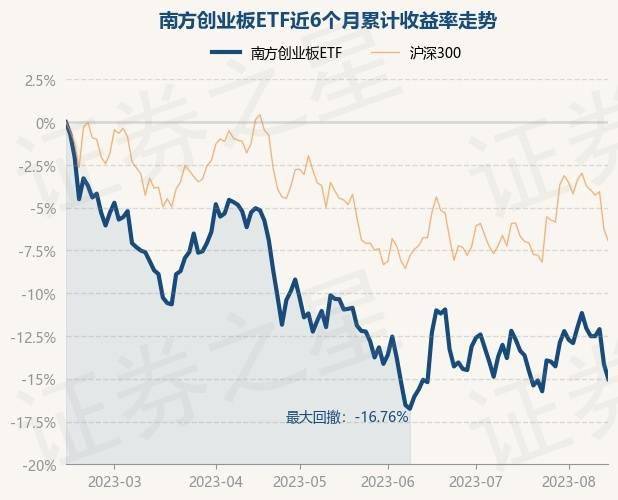 8月14日,南方创业板ETF最新单位净值为2.3278元,累计净值为1.1439元,较前一交易日下跌1.02%。历史数据显示该基金近1个月下跌2.65%,近3个月下跌3.5%,近6个月下跌15.04%,近1年下跌18.98%。该基金近6个月的累计收益率走势如下图: