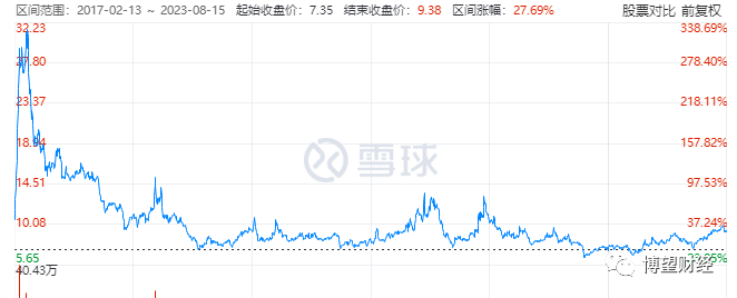 而这次减持,似乎也是酝酿于公司股价腾飞的区间。雪球数据显示,在2023年4月26日至2023年8月4日的区间内,的股价区间涨幅为31.07%(前复权)。