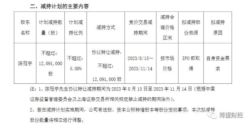 8月8日晚间,茶花股份披露,公司实际控制人之一、董事陈冠宇计划在未来3个月协议转让所持公司5%股份,减持原因为“自身资金需求”。