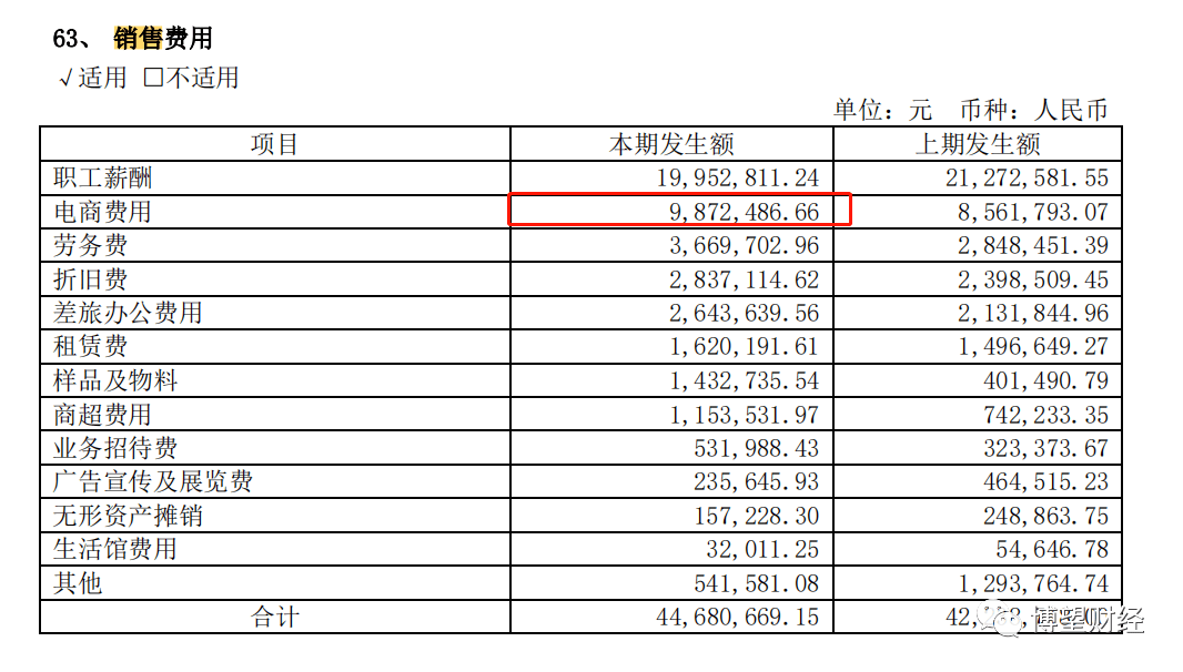 2021年,业绩转亏、首次“变脸”,与扩张发展策略相关,由于公司扩充营销团队支付销售人员薪酬增加及电商收入增加电商费用相应增加所致。年报显示,2021年公司四项期间费用合计1.87亿元,与上年同期合计数1.3亿元相比上涨 43.5%。其中,销售费用1.15亿元同比增长64.37%。