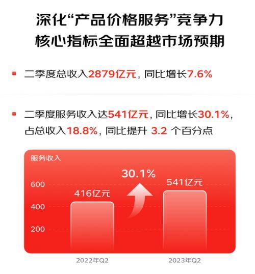 在京东集团的二季度的营收当中,电子产品及家用电器商品收入同比增长11.4%,核心品类优势进一步加强;服务收入达到541亿元人民币(约75亿美元),同比增长30.1%,其中物流及其他服务收入的同比增速达到51.5%。