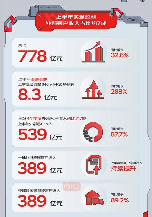 其中,外部客户收入539亿元,同比增长57.7%,已连续4个季度占比约7成。值得一提的是,2023上半年,京东物流实现盈利,仅第二季度,经调整后净利润8.3亿元,同比增长288%。