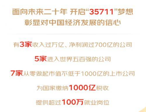今年6月18日,京东集团20周年。立足未来20年的新开局,京东重磅发布“35711”梦想:有3家收入过万亿人民币,净利润过700亿人民币的公司;5家进入世界五百强的公司;7家从零做起市值不低于1000亿人民币的上市公司;能为国家缴纳1000亿人民币税收;提供超过100万就业岗位。