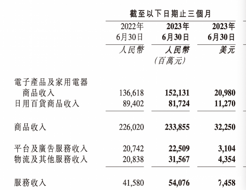 服务收入增速稳定。二季度,服务收入同比增长30.1%至541亿,占总收入18.8%,同比提升3.2个百分点。其中,平台和广告收入为225亿,物流及其他服务收入为316亿。