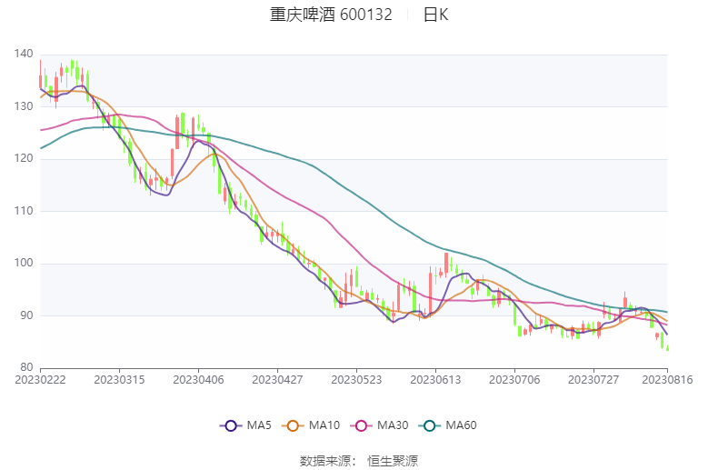 以8月16日收盘价计算,重庆啤酒目前市盈率(TTM)约为28.8倍,市净率(LF)约24.44倍,市销率(TTM)约2.76倍。