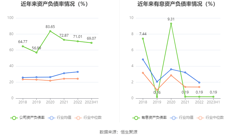 偿债能力方面,公司2023年二季度末资产负债率为69.07%,相比上年末减少1.94个百分点;有息资产负债率为0.19%,相比上年末持平。