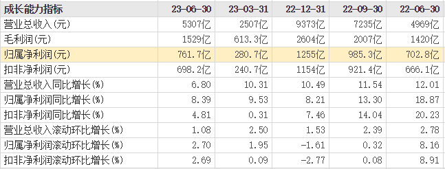 中国移动成长能力指标