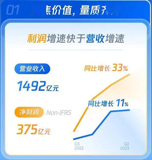 与此同时,深圳梦注意到,8月16日,腾讯发布2023年第二季度财报,公司该季度实现营收1492.08亿元,同比增长11%,净利润(Non-IFRS)375.48亿元,同比增长33%。这是腾讯营收连续第二个季度保持增长,也是净利润增速连续四个季度超过营收。