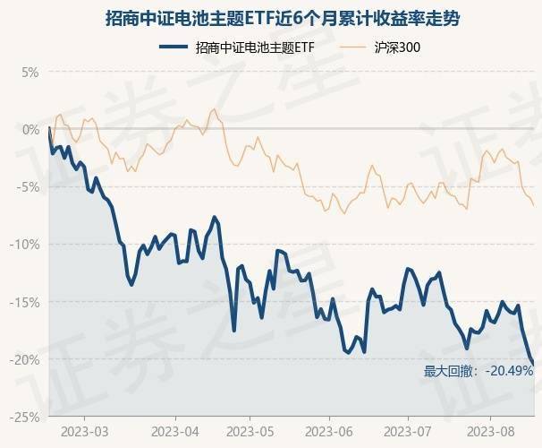 8月16日,招商中证电池主题ETF最新单位净值为0.5873元,累计净值为--元,较前一交易日下跌0.74%。历史数据显示该基金近1个月下跌7.5%,近3个月下跌10.96%,近6个月下跌20.51%,近1年下跌38.85%。该基金近6个月的累计收益率走势如下图: