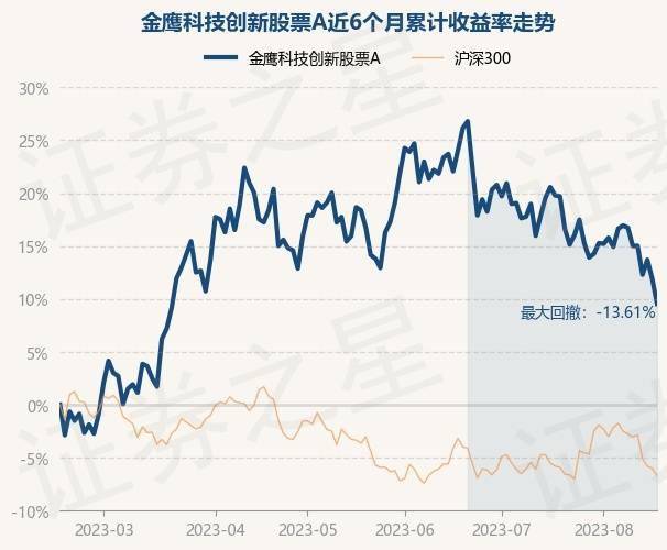 8月16日,金鹰科技创新股票A最新单位净值为1.5277元,累计净值为1.5277元,较前一交易日下跌2.14%。历史数据显示该基金近1个月下跌8.41%,近3个月下跌5.17%,近6个月上涨9.51%,近1年上涨17.7%。该基金近6个月的累计收益率走势如下图: