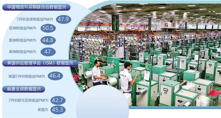 中国物流与采购联合会8月6日发布的数据则显示,7月份,全球制造业PMI为47.9,较6月份上升0.1,结束了连续4个月环比下降的走势;亚洲制造业PMI为50.5,较6月份上升0.1,连续7个月在荣枯线以上,显示亚洲制造业继续保持平稳增长态势;欧洲制造业PMI为44.8,较6月份下降0.6,连续6个月环比下降,连续12个月在荣枯线以下;美洲制造业PMI为47,较6月份上升0.5,连续9个月在荣枯线以下运行,显示美洲制造业整体仍延续弱势运行趋势。