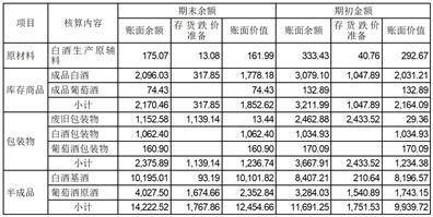 公司期末半成品主要核算内容为白酒基酒及葡萄酒原酒,期初期末库存情况如下: