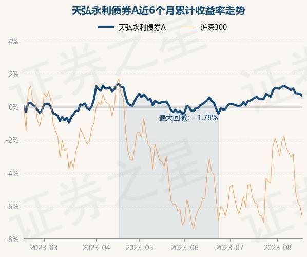 8月16日,天弘永利债券A最新单位净值为1.1882元,累计净值为1.9125元,较前一交易日下跌0.11%。历史数据显示该基金近1个月上涨0.33%,近3个月上涨0.44%,近6个月上涨0.7%,近1年上涨1.0%。该基金近6个月的累计收益率走势如下图: