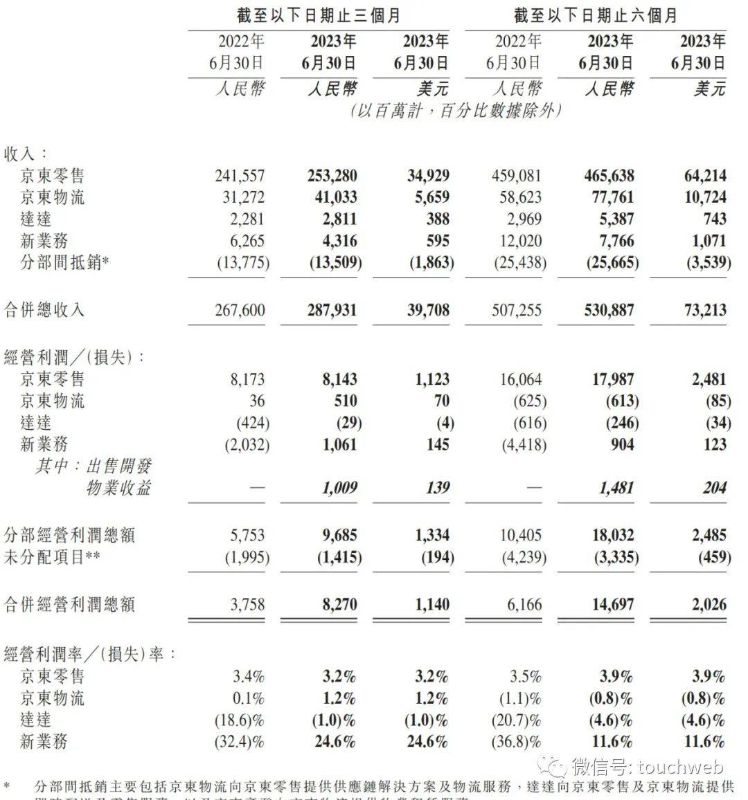 京东2023年第二季度营收为2879亿元(约397美元),较上年同期的2676亿元增长7.6%。