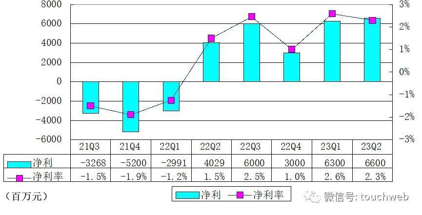 京东2023年第二季度基于非美国通用会计准则,运营利润为87亿元(约12亿美元),而上年同期为58亿元。京东零售的运营利润率为3.2%,而上年同期为3.4%。
