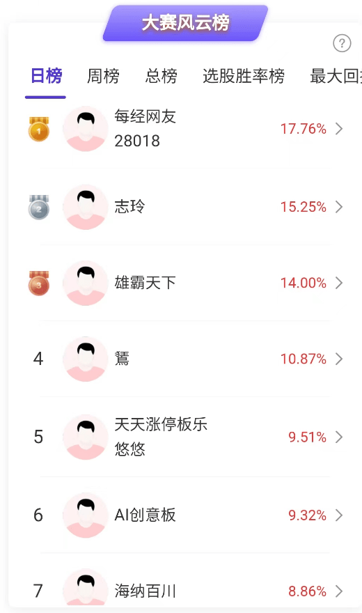 一些选手抓住了次新股的机会,从日榜第一名选手“每经网友28018”上午就盈利17.76%,他今天早上买入的C司南实现盈利30.72%。