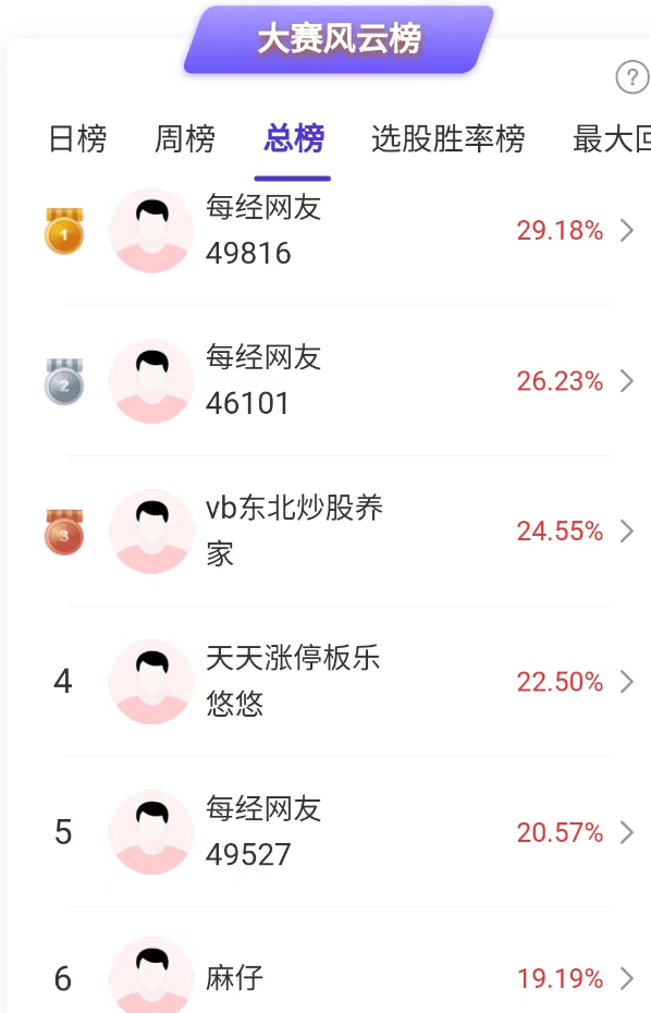 日榜第二名的“志玲”和第三名的“雄霸天下”也是早上开盘买入的C司南,也盈利了30%多。