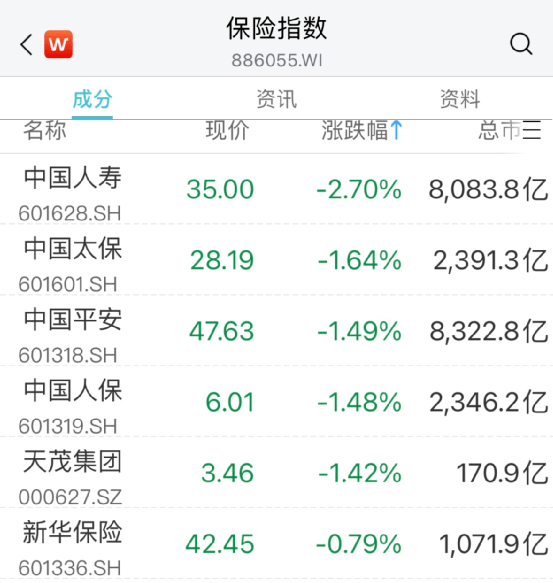 此外,大金融板块跌幅居前,证券板块早盘冲高但随后快速跳水,一度封涨停的信达证券目前涨5%,天风证券涨超3%。