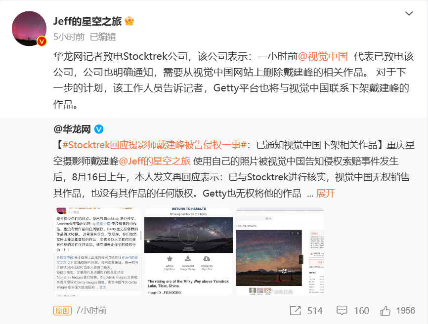 侵权争议,Stocktrek 已通知视觉中国下架摄影师戴建峰作品