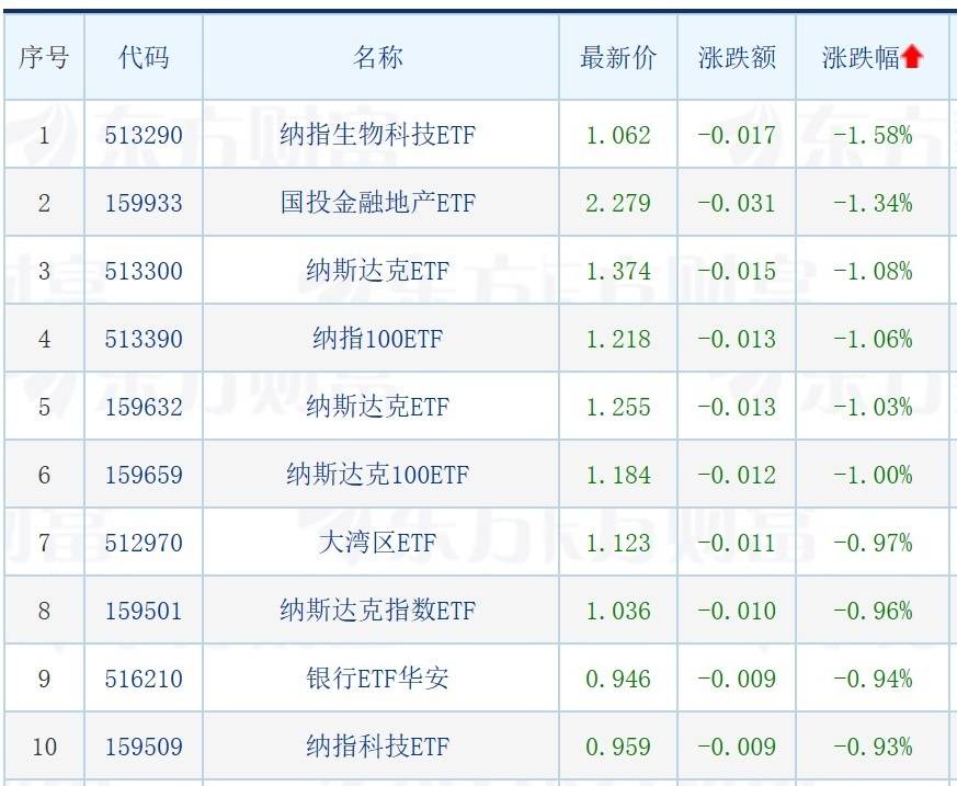 下跌方面,受美股调整影响,多只纳指相关ETF跌超1%。