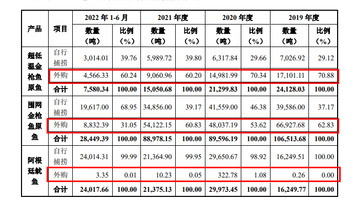 面对波动的捕捞量,大洋世家要保证市场销售,只能依赖外购,例如金枪鱼等水产品外购甚至要大于自行捕捞。