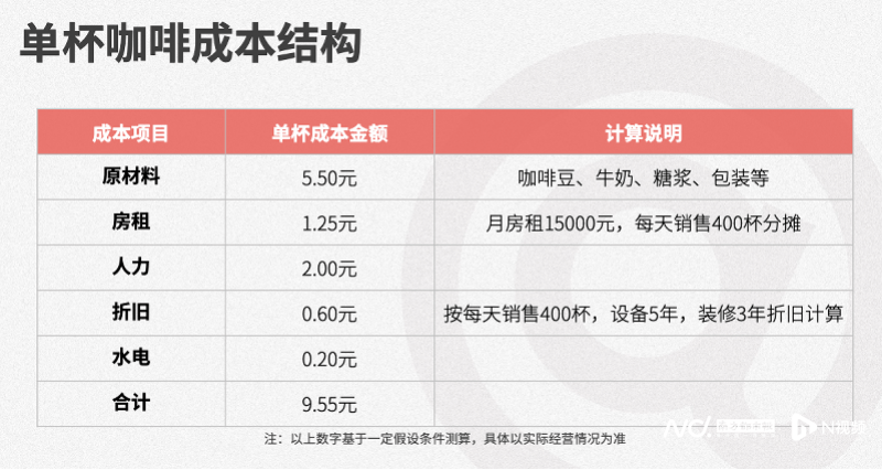 库迪首席策略官李颖波此前接受多家媒体采访时指出,库迪包含咖啡豆、牛奶、糖浆、包装等原材料成本约5.5元,每日如果销售咖啡400杯,以此平摊,单杯咖啡的房租成本约1.25元,人工成本不到2元,杂费成本约0.2元,以此计算,一杯库迪咖啡的成本在9元以下。