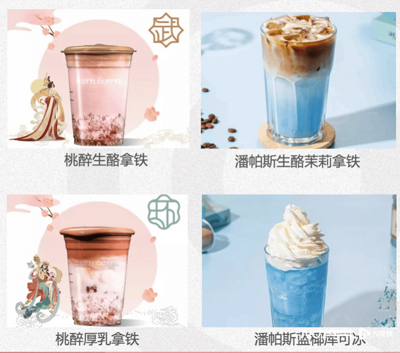 在产品上,库迪有多款产品和瑞幸颇为相似,瑞幸有生椰拿铁、生酪拿铁、陨石拿铁、瓦尔登蓝钻瑞纳冰,库迪就有生椰拿铁、生酪拿铁、星辰拿铁、潘帕斯蓝椰库可冰等。
