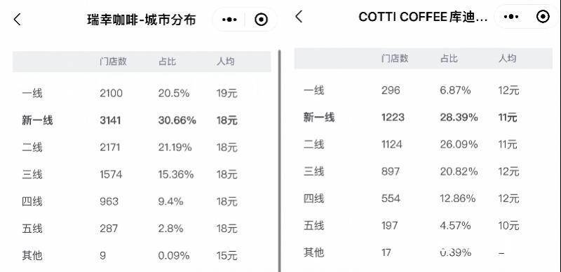 资金充足的瑞幸一开始开的都是直营店,而且瞄准一线城市,直到2021年1月才开放加盟;库迪则选择了更轻资产的模式,几乎全部采用联营,并且从低线城市入手。