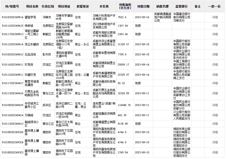 本周大成都范围内,共有10个包含住宅的项目取得预售证,其中6个项目包含车位、商业、办公用途。