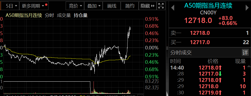 与此同时,A50亦直线拉升,人民币亦开始走强。