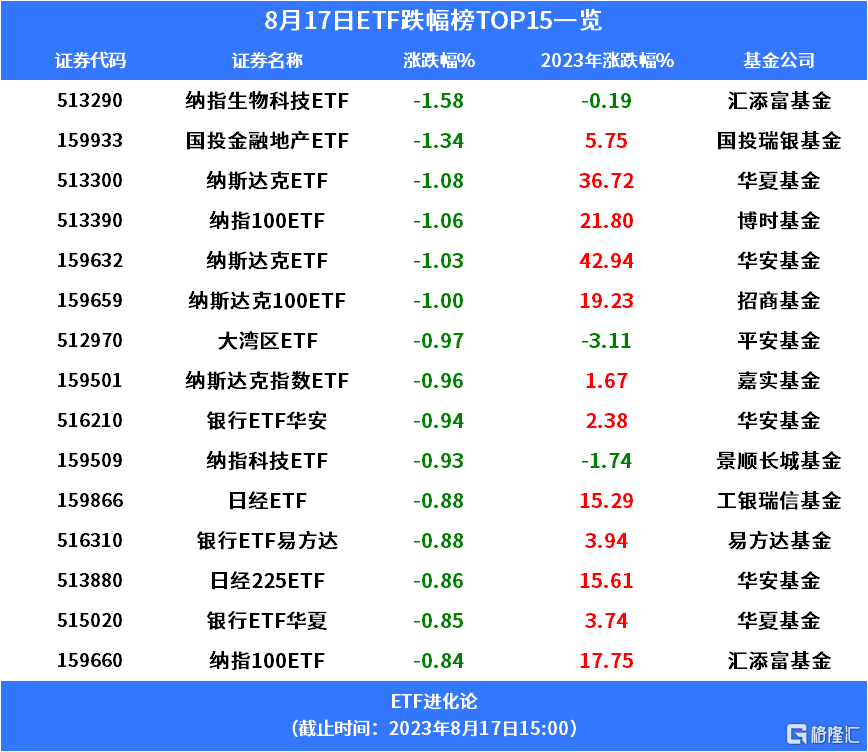 隔夜美股全线下挫,纳指生物科技ETF跌1.58%。银行板块走弱,银行ETF华安跌0.94%。日股收跌,日经ETF跌0.88%。