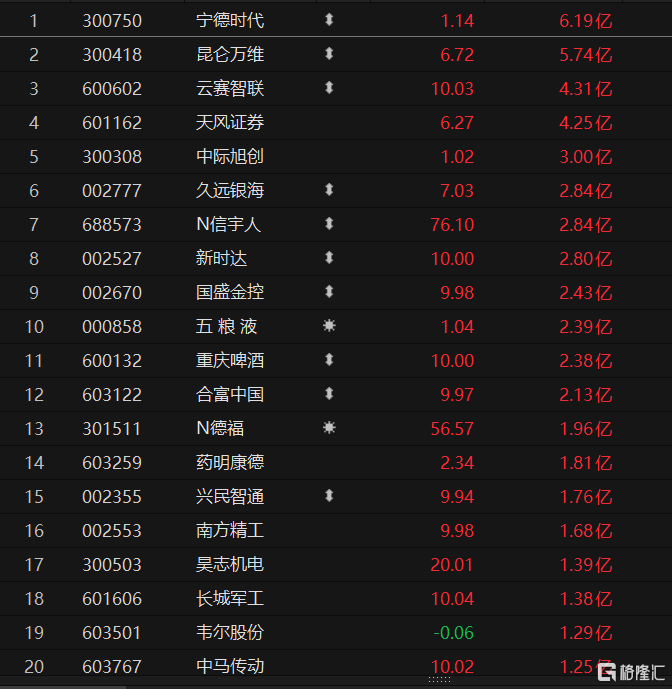 从资金流向上看,主力资金大幅流入科技股、券商股与饮料股,宁德时代与昆仑万维流入资金超过5亿元。