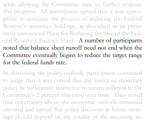 多名(A number of)与会者指出,当(FOMC)委员会最终开始降低联邦基金利率的目标区间时,缩表不一定会结束。