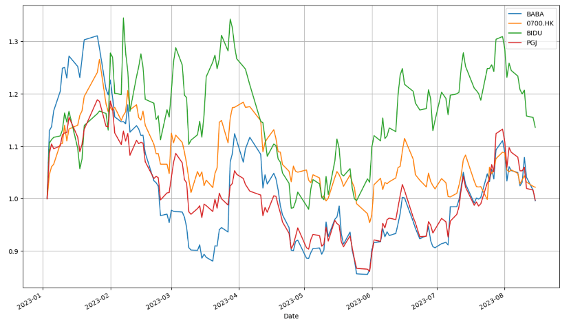 基于此我们统计了一年内BAT三家公司与中概大盘(金龙指数基金)的股价起伏情况(初始值设为“1”),可以看到在ChatGpt大热之后,百度快速响应,在资本市场确实得到了认可,自此之后百度的市场估值能力要强于后两者(与此前迥然不同)。