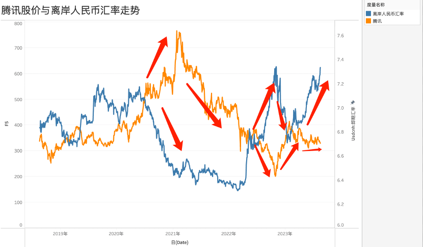 如前文所阐释的那般,腾讯与离岸人民币汇率确实呈现明显的相关性,上图中两条折线基本对称分布(2021年由于行业系统风险例外),但近期在离岸人民币汇率大幅浮动之时,腾讯股价波动乃是相当小的,我们认为很大程度上也是回购对股价的稳定性,否则股价下探位置绝不止当前水平。